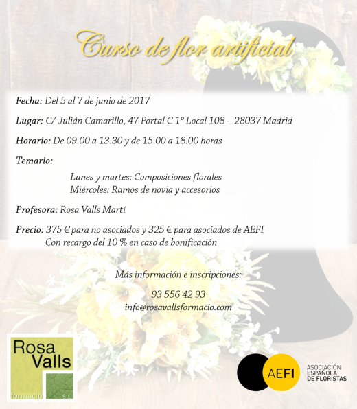 Del 5 al 7 de junio se celebrará en Madrid un curso de flor artificial impartido por Rosa Valls con la colaboración de la Asociación Española de Floristas.