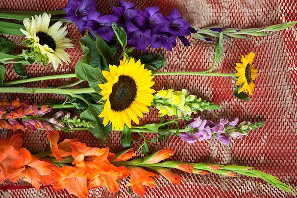Con su aspecto colorido y formas robustas, estos tres típicos del verano son muy adecuados para ramos alegres para, por ejemplo, una decoración de mesa o un arreglo paralelo, precisamente por las formas alargadas del gladiolo y el Antirrhinum, y la forma redonda del girasol. Al hacer ramos y composiciones florales, hay que tener en cuenta la longitud y el peso de estas flores.