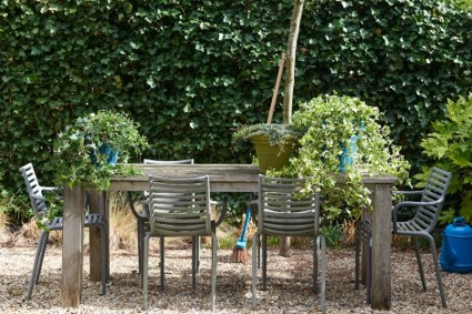 Algunas ideas de decoración con Hedera son sobre una mesa en bloques o junto con otras plantas trepadoras como Clematis o rosales trepadores.