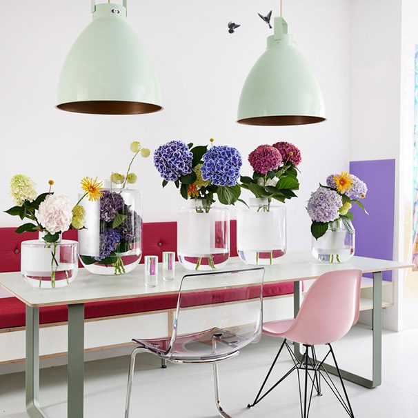 La hortensia, en combinación con colores como lila, rosa y amarillo, y elementos exóticos, crea una sensación veraniega y tranquila.